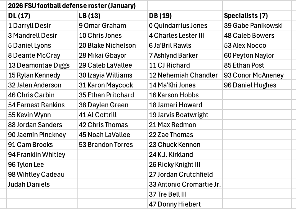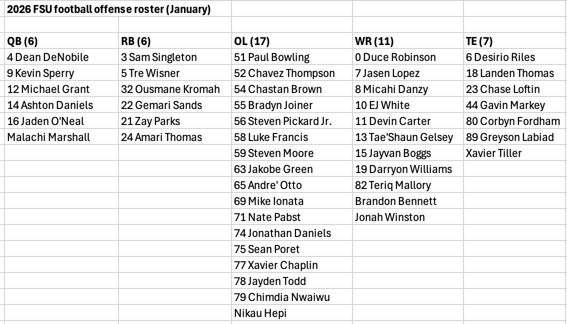 We’ve charted out each position group and broken them up into offense and defense below. FSU is at 103 players, which would mean a few more could be added to reach the 105-man roster limit.