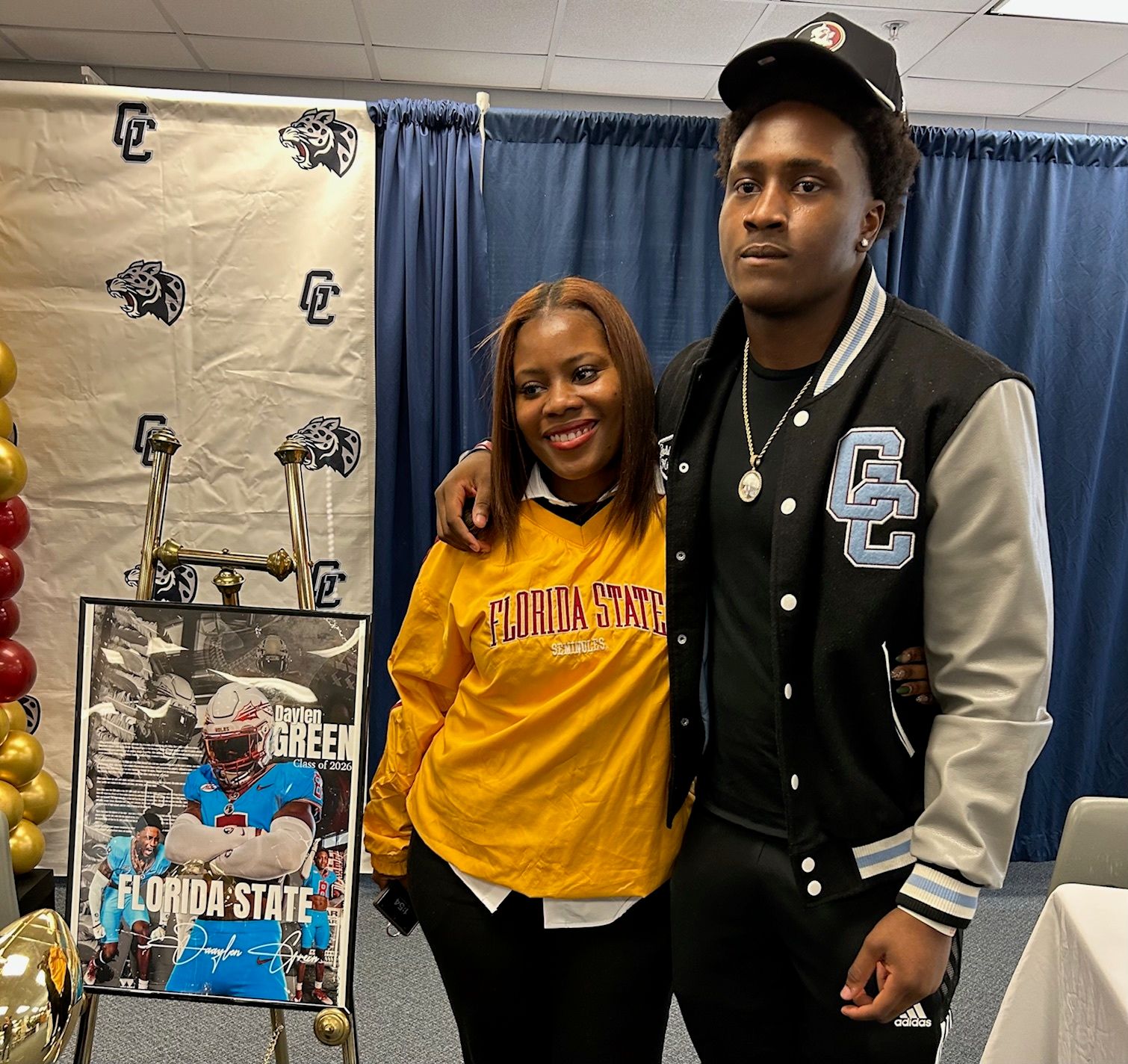 Daylen Green and his mom at Gadsden County’s signing ceremony